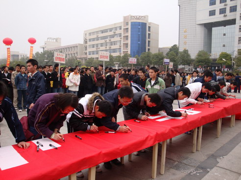最后,与会领导和大学生近万人在“防止传销进校园”的横幅上签了名。