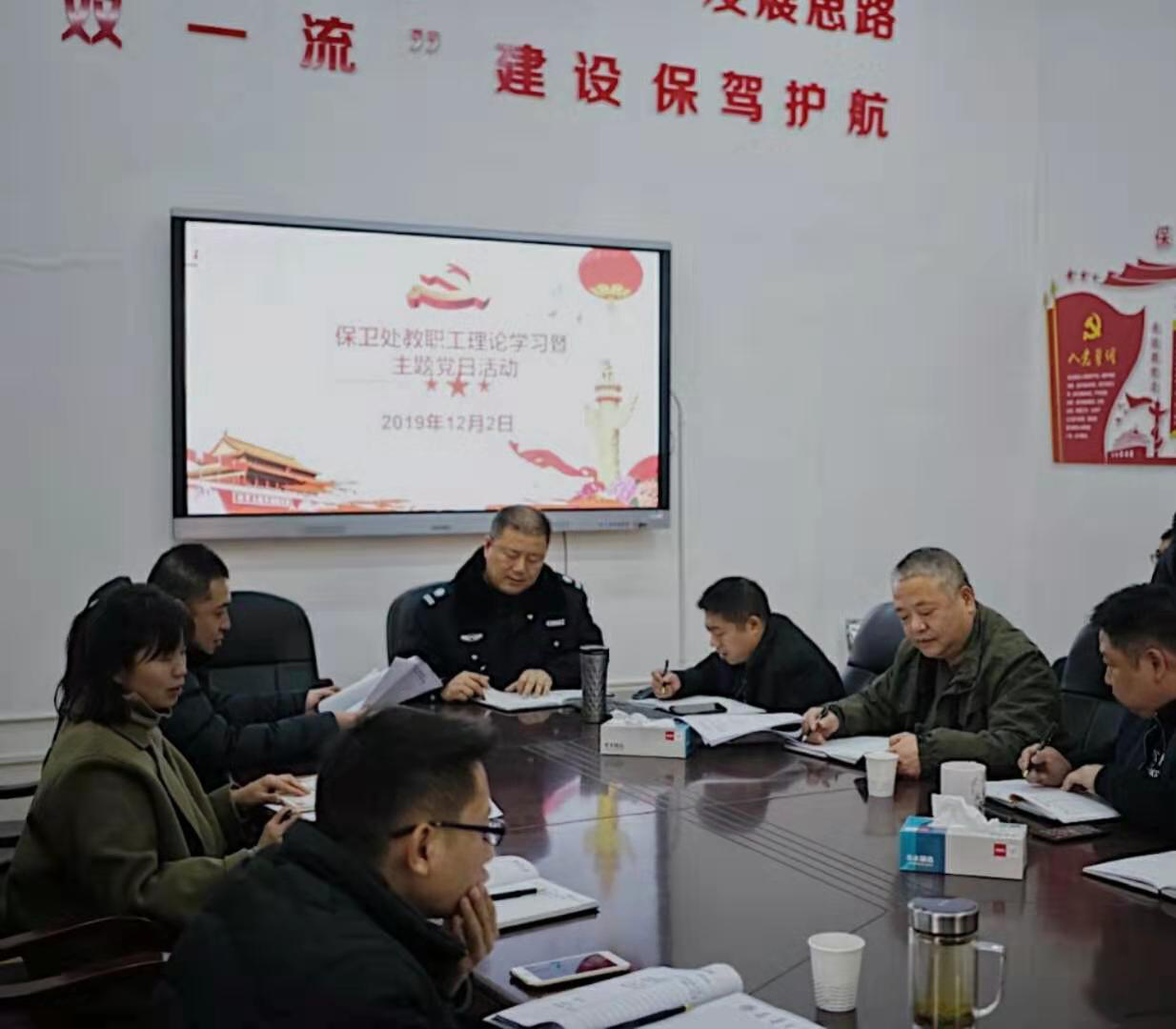 根据校宣传部和机关党委的统一安排,保卫处党支部结合实际,于12月2日下午3:00在会议室开展全体教职工第6次理论学习暨党员主题日活动。会议由支部书记吴莎莉主持。